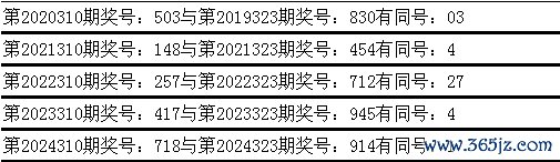 与前期历史同时奖号对比分析,在最近五年开奖中,第310期同时奖号与第323期同时奖号王人出现了疏浚号码: